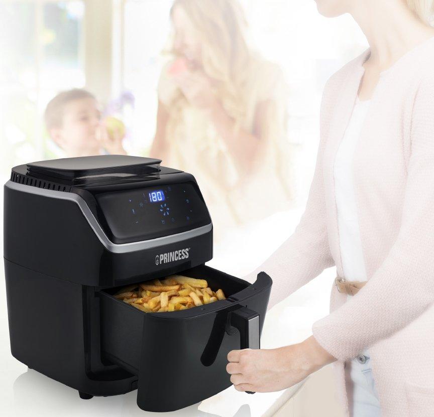 اختر نمط حياة صحّي بفضل هذا الجهاز العملي مزدوج الاستعمال إذ يمكن استعماله كمقلاة هوائية وفرن بخاري على حدٍ سواء! بفضل هذا الاختيار يمكنكم التمتع بوجبات شهية والحفاظ على جميع الفيتامينات والأملاح المعدنية المفيدة للصحة. احصلوا على طعام شهي ومقرمش بفضل القلاية الهوائية وخضار مطهو على البخار بفضل الفرن البخاري. تمتاز القلاية بسعتها الكبيرة 6،5 ليتر مما يمكّنكم تحضير جميع أنواع الأطباق!