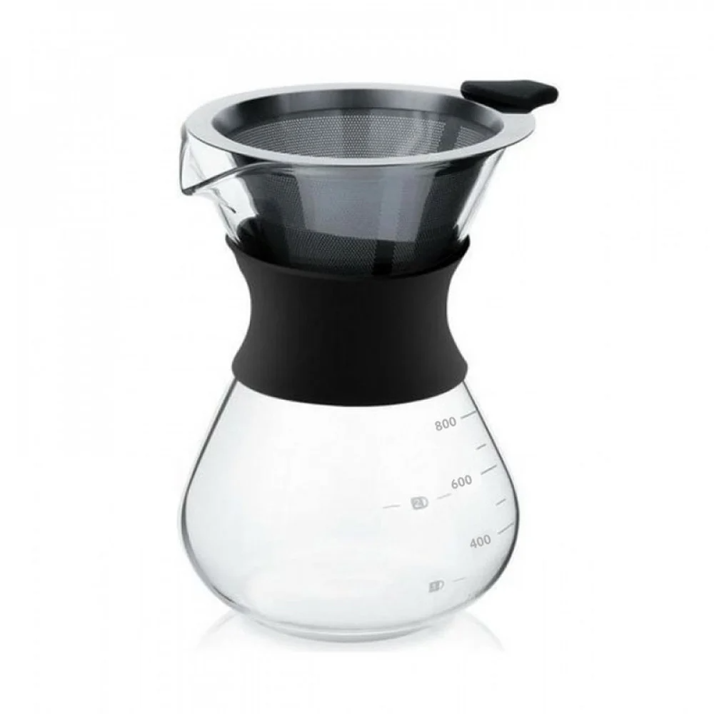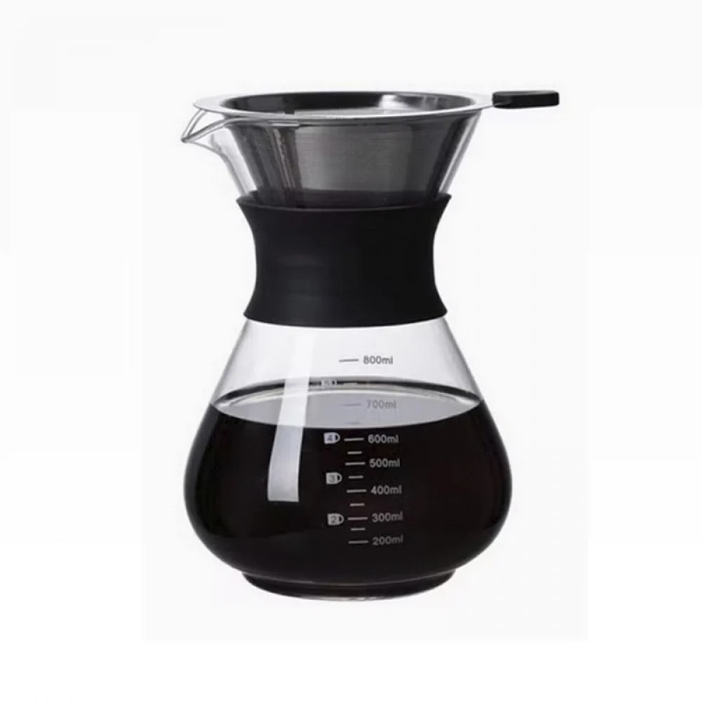 - دلة القهوة مع فلتر من الفولاذ المقاوم للصدأ W536g/V800ml/H215mm، فلتر زجاج بوروسيليليك مرتفع 800 مل من الفولاذ المقاوم للصدأ معزول بتصميم حزام من السيليكون
