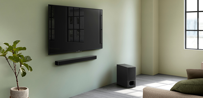 عند تثبيت السماعة الشريطية على الحائط، تكمل خطوطها بشكل مثالي تصميم تلفزيونك. وتتسم كذلك ببساطة التوصيل، ما يتيح لك الاستمتاع بمشاهدة الأفلام والموسيقى وغيرها.