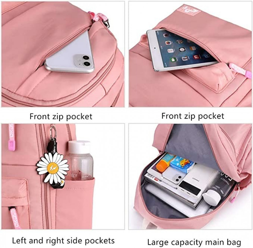 السعة: سعة تخزين كبيرة وجيوب متعددة، ومساحات تخزين داخلية، لوضع الكتب والأدوات المكتبية وغيرها من الأشياء. تصميم الجيب الجانبي للشنطة يسمح بتخزين زجاجات المياه، وتصميم الجيب الأمامي المزود بسحاب يسمح بتخزين الفكة وغيرها من الأشياء مما يلبي احتياجاتك المتنوعة.